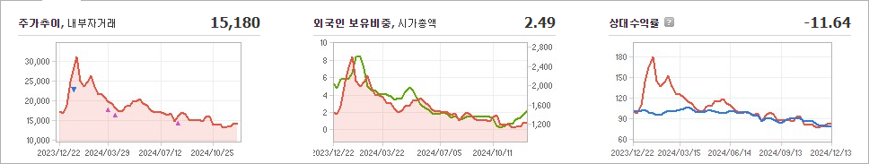 밀리의서재의 현재 주가는 15,180원으로, 전일 대비 1.49원이 하락한 상태입니다. 주주 현황을 살펴보면, 지니뮤직과 다른 한 개인이 총 38.74%의 지분을 보유하고 있습니다. 이 기업은 미디어 분야에 속하며, 현재 기준으로 주가는 15,180원입니다. 밀리의서재의 시가총액은 1,303억 원이며, 발행된 주식 수는 8,499,289주입니다. 외국인 투자자의 보유 비율은 2.49%이며, 현재 거래량은 233,583주에 달합니다. 최근 매출액은 531억 원에 이릅니다.