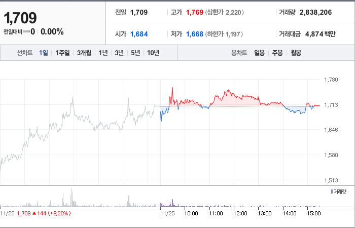 현재 위지윅스튜디오의 주가는 1,709원으로, 이전 거래일 대비 25.70원이 하락했습니다. 주주 현황을 살펴보면, 컴투스와 기타 두 개인이 총 47.81%의 지분을 보유하고 있습니다. 위지윅스튜디오는 미디어 기업으로, 현재 장중 주가는 1,709원입니다. 이 회사의 시가총액은 2,923억 원이며, 발행된 주식 수는 171,048,884주입니다. 외국인 투자자의 보유 비율은 3.86%이며, 장중 거래량은 7,768,051주에 달했습니다. 또한, 위지윅스튜디오의 매출액은 239억 원에 이릅니다.