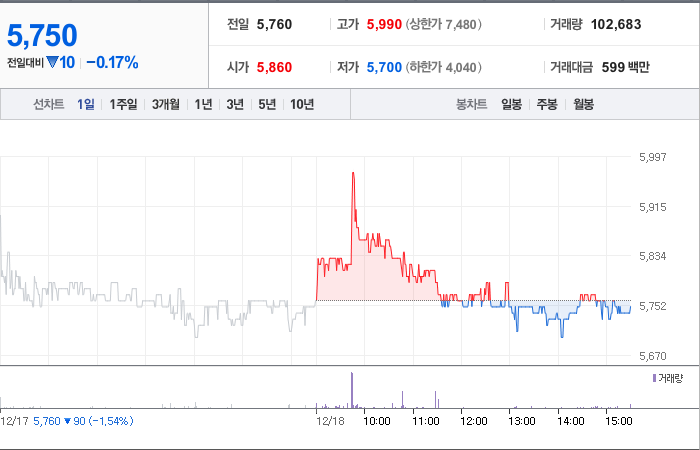 인트론바이오의 현재 주가는 5,760원으로, 전일 대비 90원이 하락했습니다. 주주 현황을 살펴보면 윤성준(외 3인)이 총 15.92%의 지분을 보유하고 있습니다. 이 회사는 바이오 분야에 속하며, 장중 기준으로 주가는 5,760원입니다. 인트론바이오의 시가 총액은 1,964억 원이며, 총 발행 주식 수는 34,150,762주입니다. 외국인 보유 비율은 3.87%이며, 장중 거래량은 44,073주에 달했습니다. 최근 매출액은 49억 원을 기록했습니다.