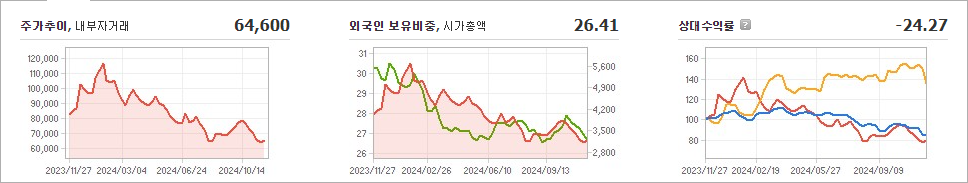케이아이엔엑스의 현재 주가는 64,600원으로, 전일 대비 8.89원 하락했습니다. 주주 현황을 살펴보면 가비아와 그 외 5명이 총 39.87%의 지분을 보유하고 있습니다. 케이아이엔엑스는 인터넷 서비스 분야에서 활동하는 기업이며, 현재 주가는 64,600원입니다. 이 회사의 시가총액은 3,460억 원이고, 발행된 주식 수는 4,880,000주입니다. 외국인 보유 비율은 26.41%이며, 장중 거래량은 22,945주에 달했습니다. 또한, 케이아이엔엑스의 매출액은 969억 원에 이릅니다.