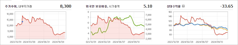 현재 케이엠더블유의 주가는 8,300원으로, 전일 대비 50원이 하락했습니다. 주주 현황을 살펴보면 김덕용(외 1인)이 33.22%의 지분을 보유하고 있습니다. 이 회사는 통신장비를 전문으로 하는 기업이며, 현재 주가는 8,300원입니다. 케이엠더블유의 시가 총액은 3,413억 원이며, 발행된 주식 수는 39,820,883주입니다. 외국인의 보유 비율은 5.10%이며, 장중 거래량은 84,747주에 달했습니다. 또한, 매출액은 592억 원을 기록했습니다.