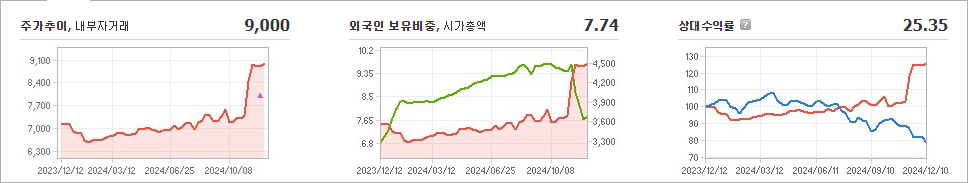현재 코엔텍의 주가는 9,000원으로, 전일 대비 변동이 없었습니다. 주주 현황을 살펴보면, 이앤아이홀딩스와 다른 개인이 총 79.52%의 지분을 보유하고 있습니다. 코엔텍은 상업 서비스 분야에 속하는 기업으로, 장중 기준으로 주가는 9,000원입니다. 이 회사의 시가 총액은 4,500억 원이며, 발행된 주식 수는 50,000,000주입니다. 외국인이 보유한 주식 비율은 7.74%이며, 장중 거래량은 81,714주에 달했습니다. 또한, 코엔텍은 613억 원의 매출을 기록했습니다.