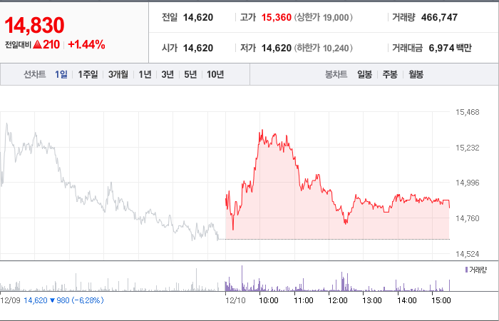 태광의 현재 주가는 14,620원으로, 전일 대비 -980원의 하락세를 보이고 있습니다. 주주 현황을 살펴보면 대신인터내셔날과 그 외 10인이 총 45.63%의 지분을 보유하고 있습니다. 태광은 기계 제조업체로, 장중 주가는 14,620원입니다. 태광의 시가총액은 3,930억 원이며, 발행 주식 수는 26,500,000주입니다. 외국인 보유 비중은 12.10%이며, 장중 거래량은 396,839주에 달했습니다. 태광의 매출액은 2,007억 원에 이릅니다.