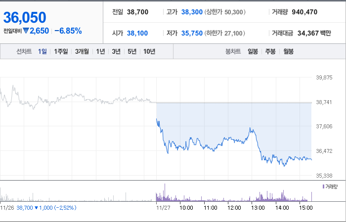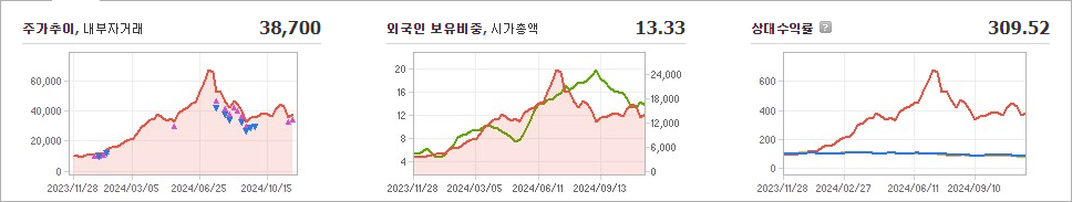 현재 테크윙의 주가는 38,700원으로, 전일 대비 1,000원 하락한 상황입니다. 주주 현황을 보면 나윤성 씨와 다른 3명이 총 13.58%의 지분을 보유하고 있습니다. 테크윙은 반도체 및 관련 장비를 전문으로 하는 기업으로, 현재 주가는 38,700원입니다. 시가 총액은 1조 3,466억 원이며, 발행된 주식 수는 37,353,645주입니다. 외국인 투자자의 보유 비율은 13.33%이며, 장중 거래량은 416,253주에 달했습니다. 테크윙의 매출액은 911억 원을 기록했습니다.