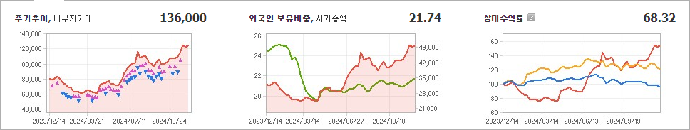 HD현대미포의 현재 주가는 136,000원으로, 전일과 동일한 수준을 유지하고 있습니다. 주주 현황을 살펴보면, 에이치디한국조선해양과 그 외 4인이 총 42.85%의 지분을 보유하고 있습니다. 이 회사는 조선업체로, 장중 기준 주가는 136,000원입니다. HD현대미포의 시가총액은 5조 4,441억 원이며, 발행된 주식 수는 39,942,149주입니다. 외국인 투자자의 보유 비중은 21.74%이며, 장중 거래량은 439,564주에 달했습니다. 또한, 매출액은 32,072억 원을 기록했습니다.