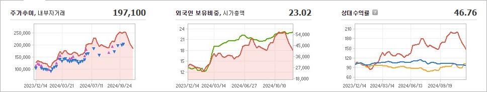 LIG넥스원의 현재 주가는 197,100원으로, 전일 대비 29.32원이 하락했습니다. 주주 현황을 보면 엘아이지와 기타 8인이 42.47%의 지분을 보유하고 있습니다. LIG넥스원은 상업 서비스 분야에 속하는 기업으로, 장중 주가는 197,100원입니다. 이 회사의 시가 총액은 4조 3,560억 원이며, 발행된 주식 수는 22,000,000주입니다. 외국인의 보유 비율은 23.13%이며, 장중 거래량은 184,085주에 달했습니다. LIG넥스원의 매출액은 21,085억 원을 기록했습니다.